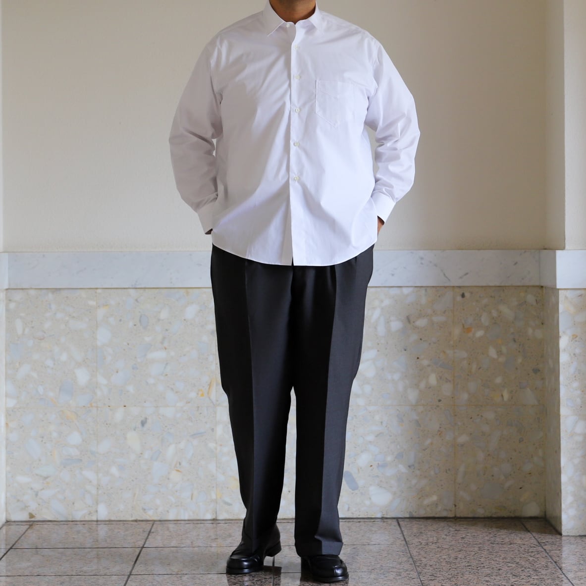 1930年代シャツの特徴は、ボックスシルエットに小ぶりの襟、着丈も長くなくアウトした状態でもバランスよく着られます。