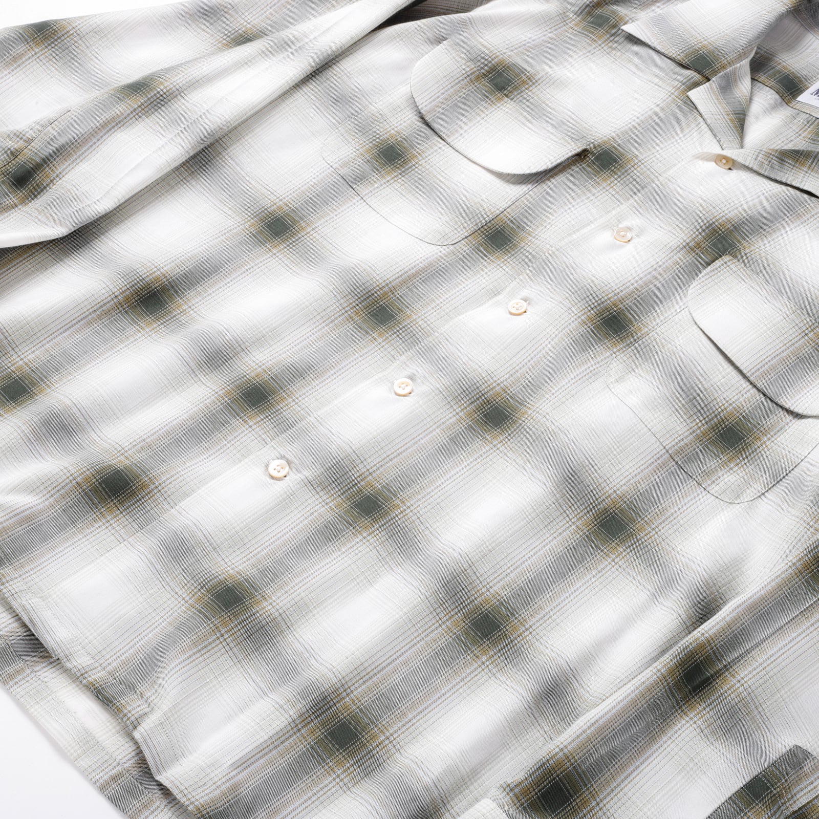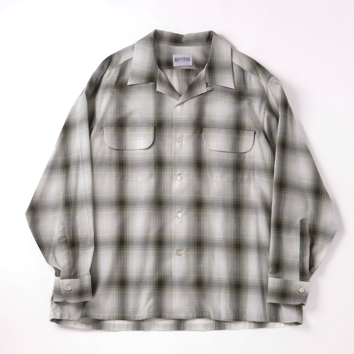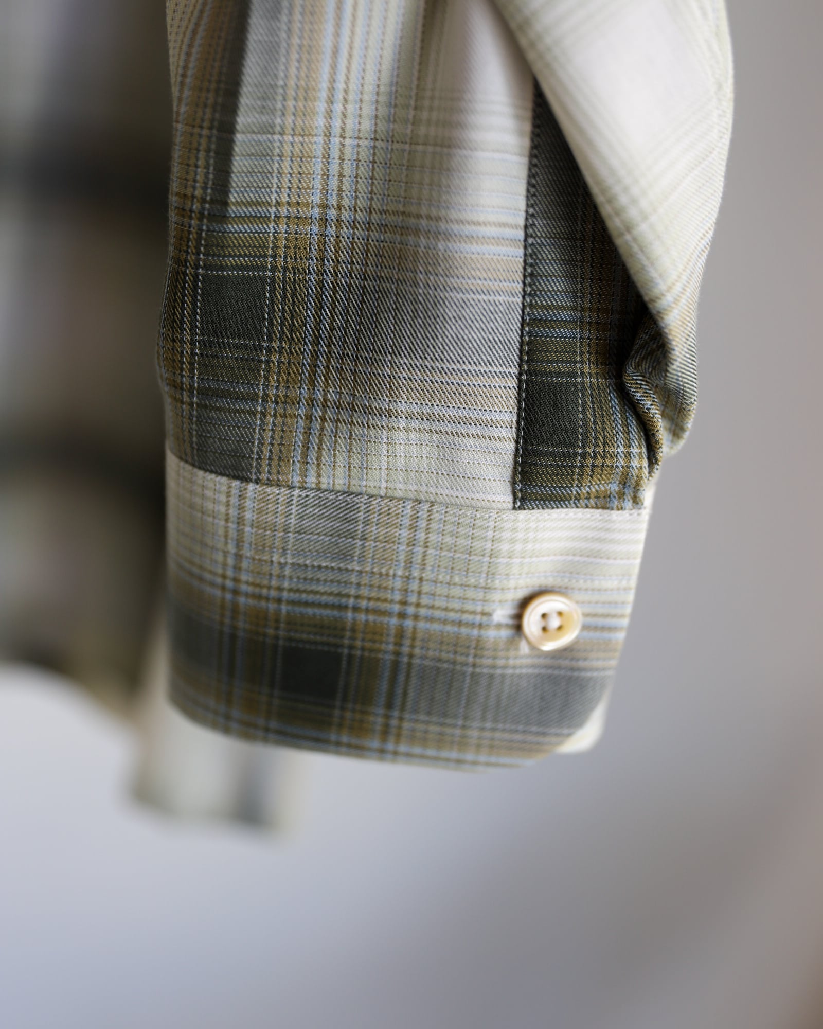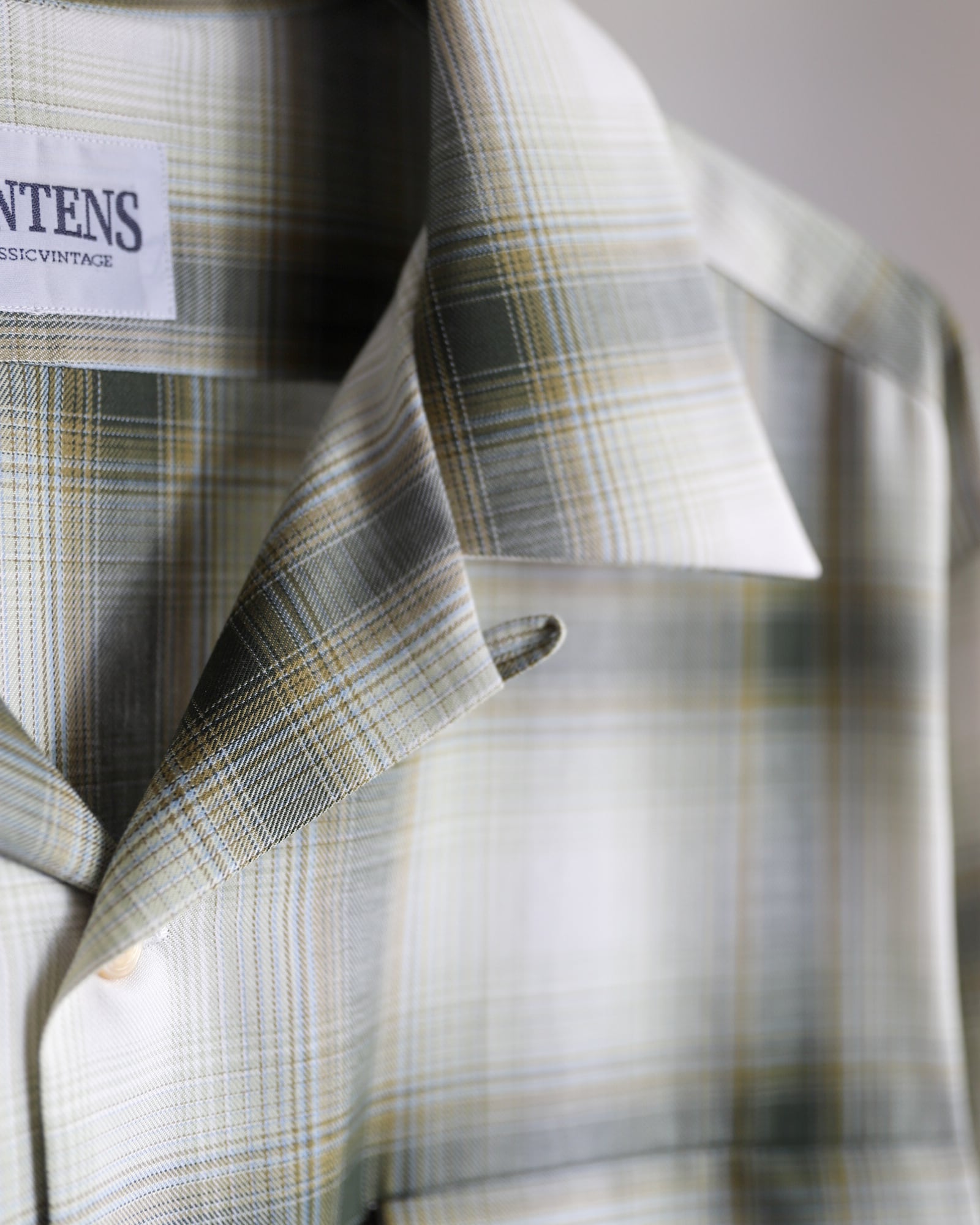 【新品】MINTENS 1960s vintage cotton shirts made in Italy fabrics made in JAPAN/ イタリア製 ヴィンテージ生地 コットン オープンカラー オンブレ チェック シャツ カーキ グリーン オリジナルブランド 1960年代シルエット サイズ①