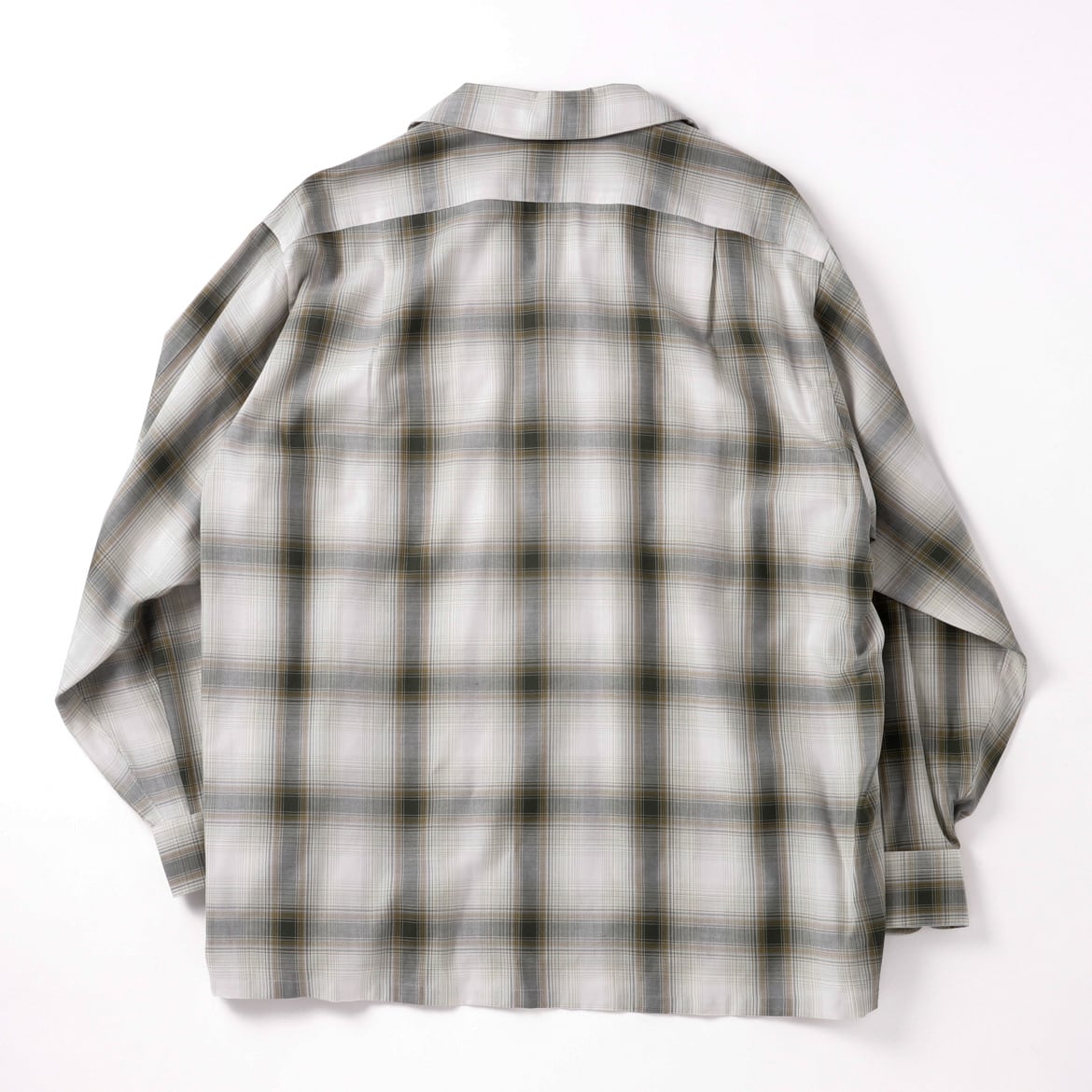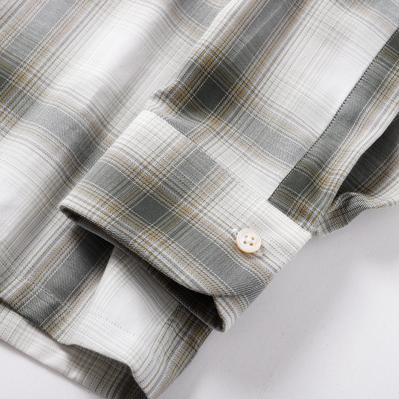 イタリア製 ヴィンテージ生地 コットン オープンカラー オンブレ チェック シャツ